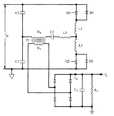 SCR諧振橋式拓撲概述諧振型半橋電路 ( 圖 6 10 ) 和全橋電路 ( 圖 6 11 ) 是最有用的 SCR 電路。半橋電路僅用 兩個額定有